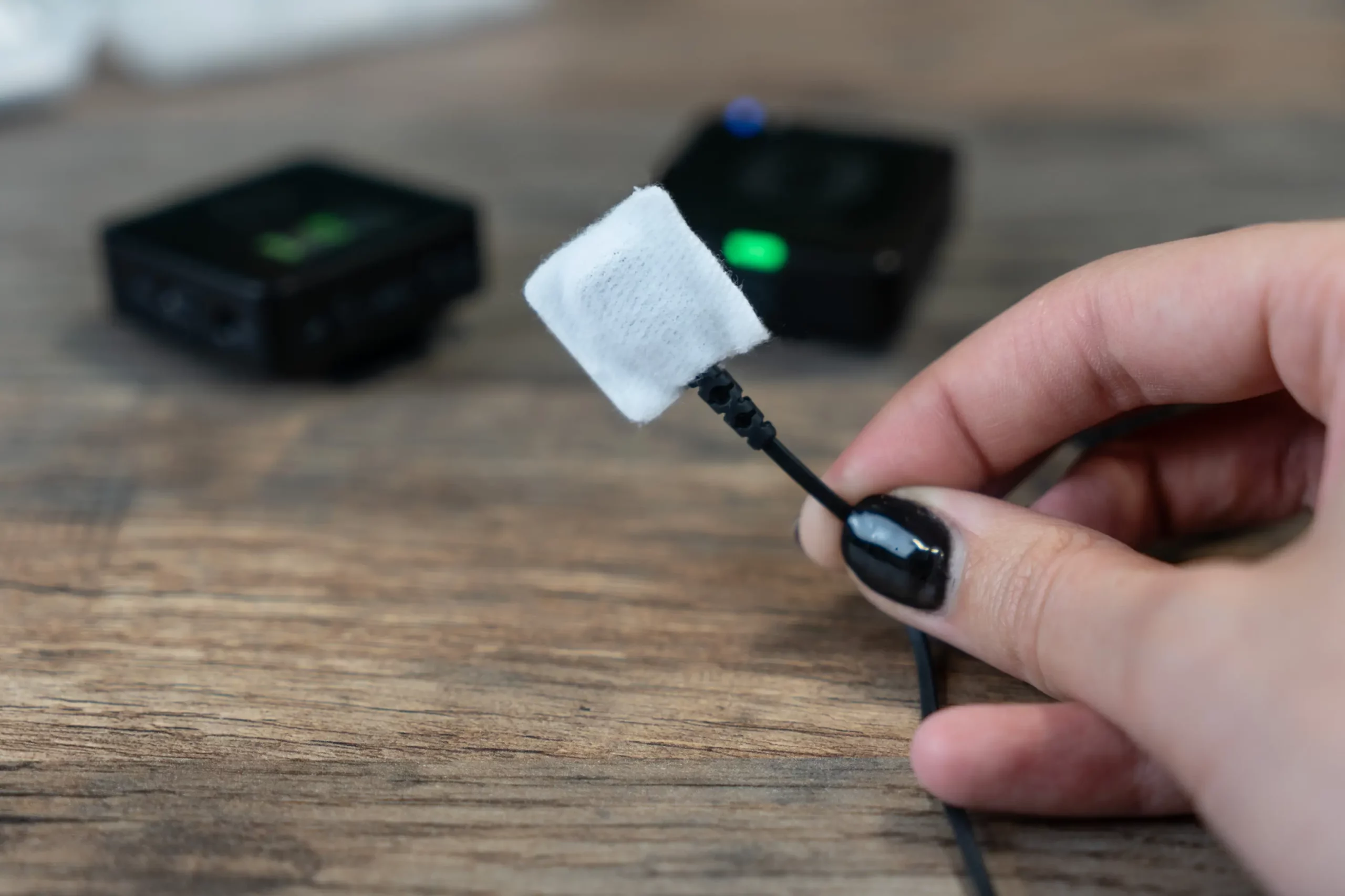 El tejido moleskin es más suave y silencioso, ideal para ropa ajustada o telas que tienden a rozar más con el micrófono.