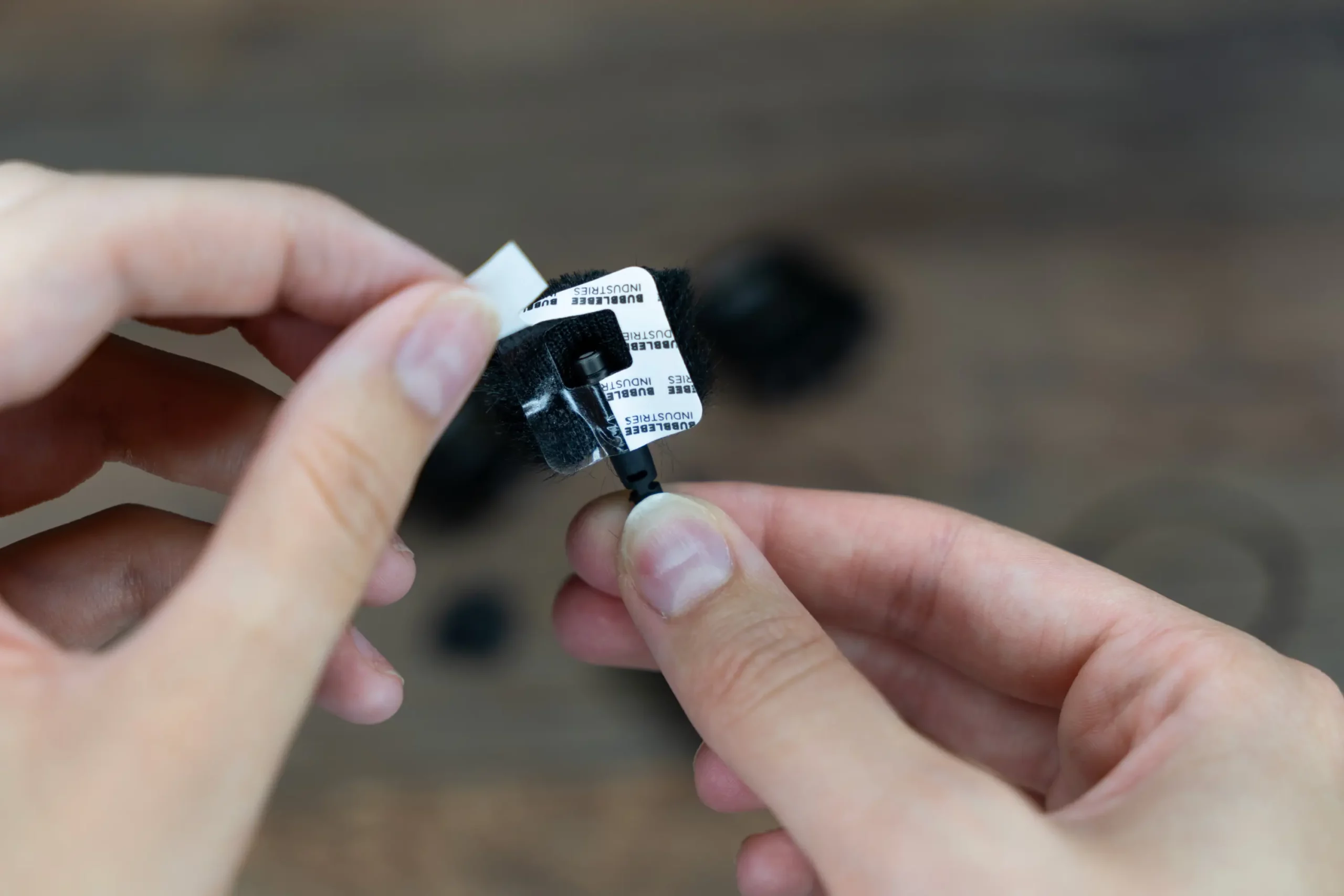 Aplicación: Una cara se adhiere al micrófono o accesorio y la otra a la piel o tejido, permitiendo colocación casi en cualquier posición.