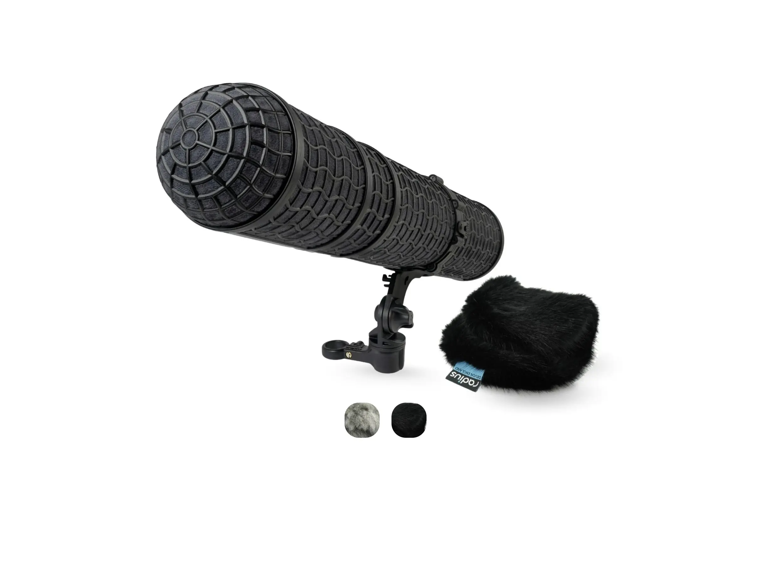 Estos kit´s consisten en un parabrisas magnético ultraligero de 2 piezas que puede montarse y desmontarse en segundos, además de una funda de piel extraíble para una mayor protección contra el viento de hasta -40dB y un mango PG (pistol grip), que es un accesorio ergonómico para micrófono incluido como componente adicional en los kits de parabrisas de Radius más pesados.