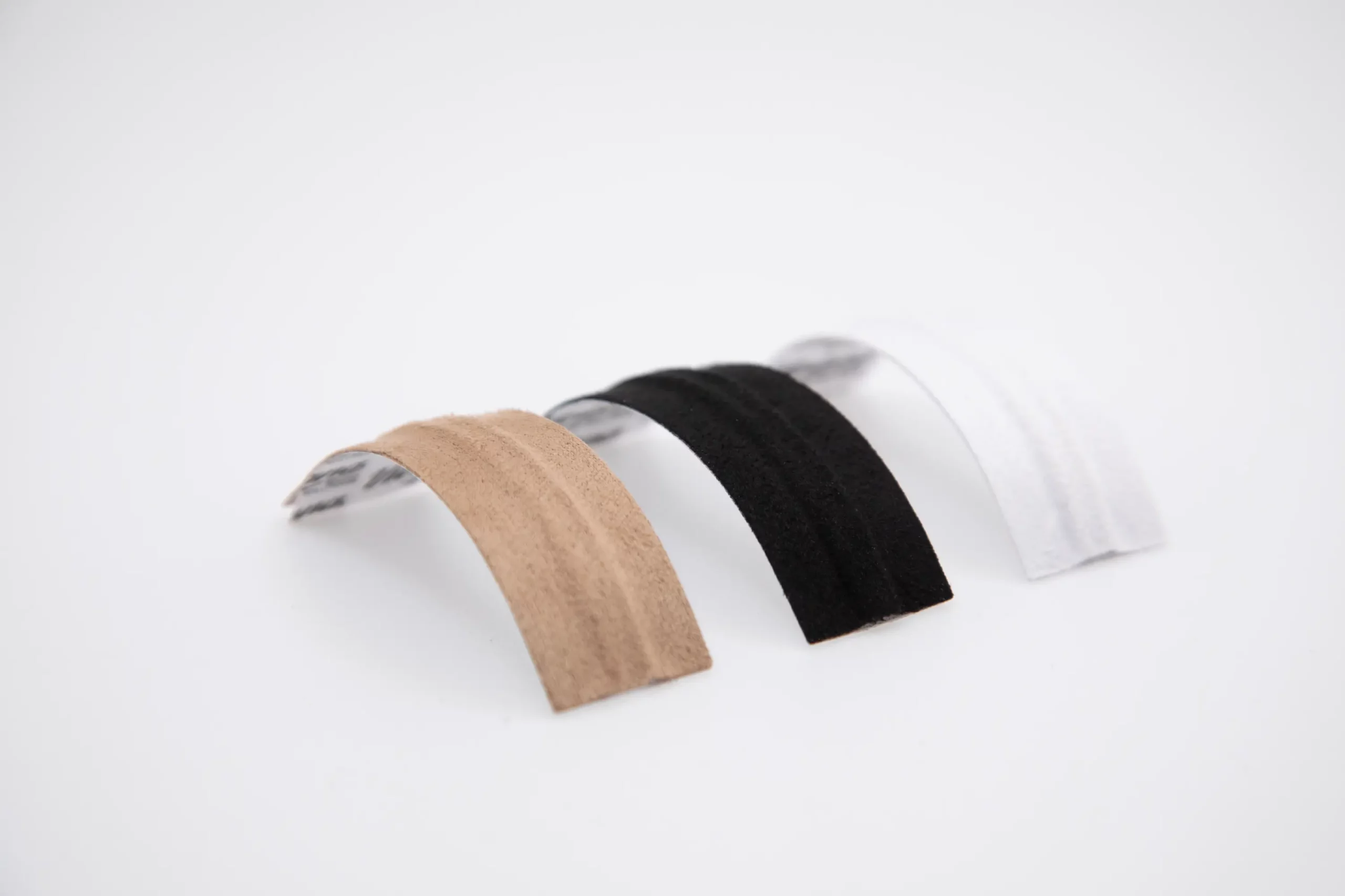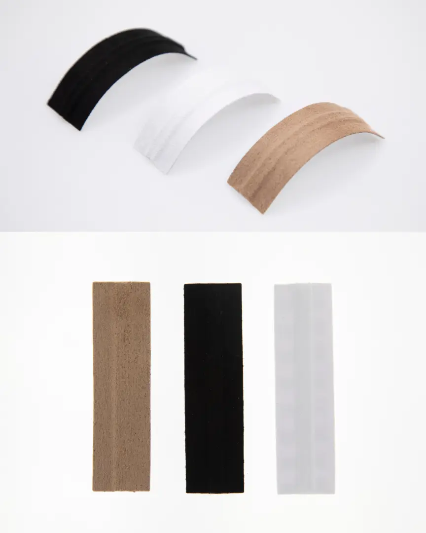 Cada paquete contiene 12 tiras de moleskin con alambre interno, disponibles en combinaciones de colores (negro, blanco o mezcla).