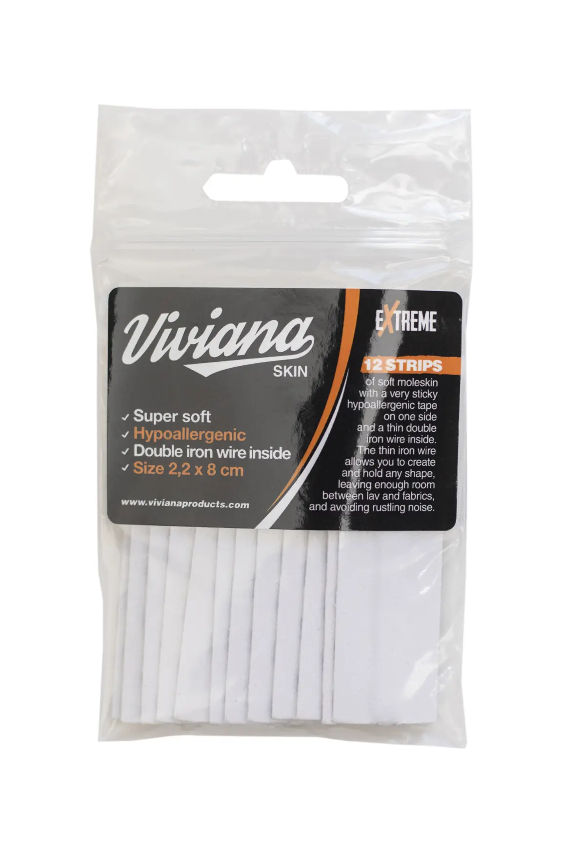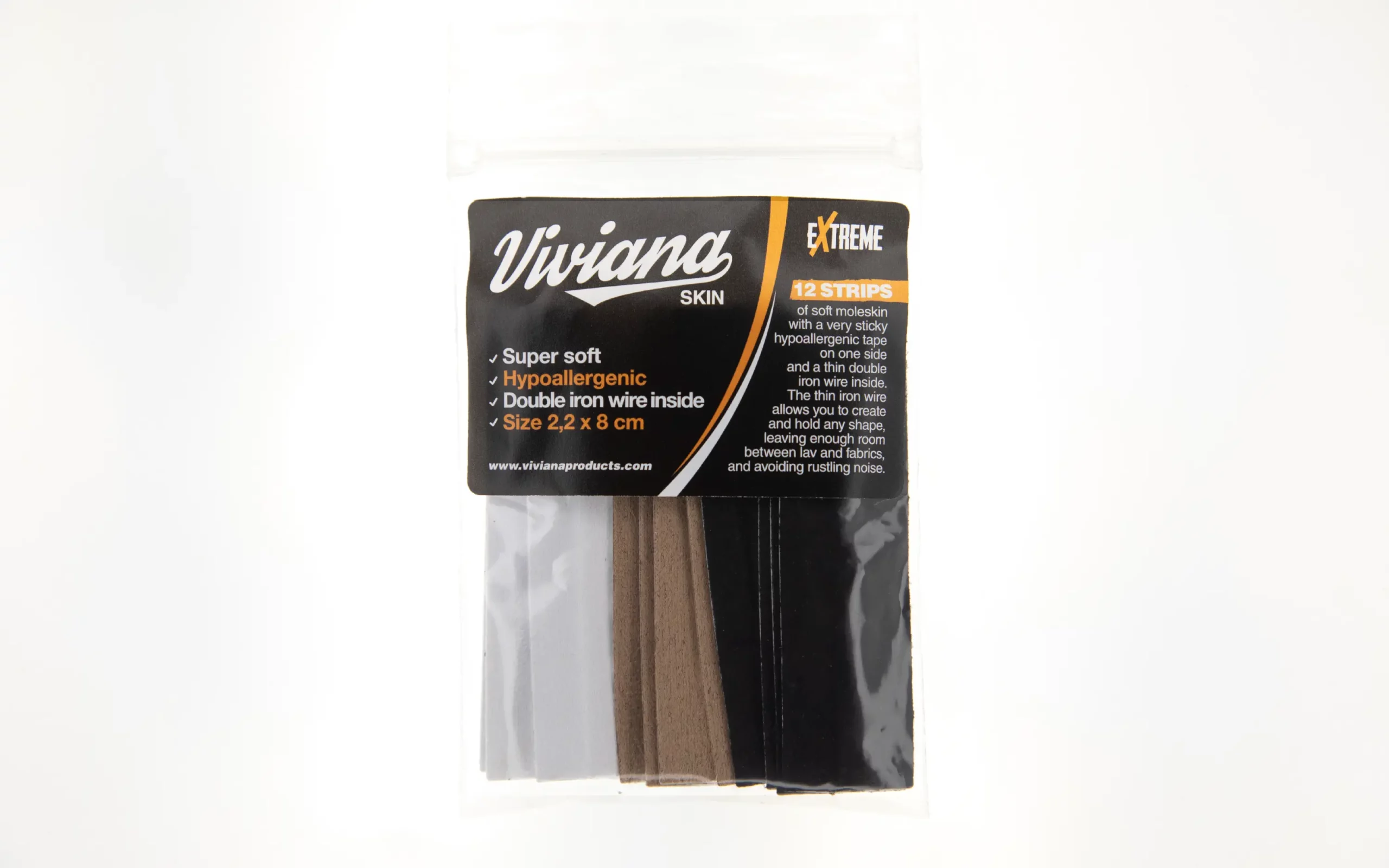Viviana MoleSkin Extreme es una cinta especial de moleskin con alambre doble integrado que permite crear un pequeño arco entre el micrófono lavalier y la tela para reducir ruidos de roce (cloth-rustle) durante grabaciones audiovisuales.