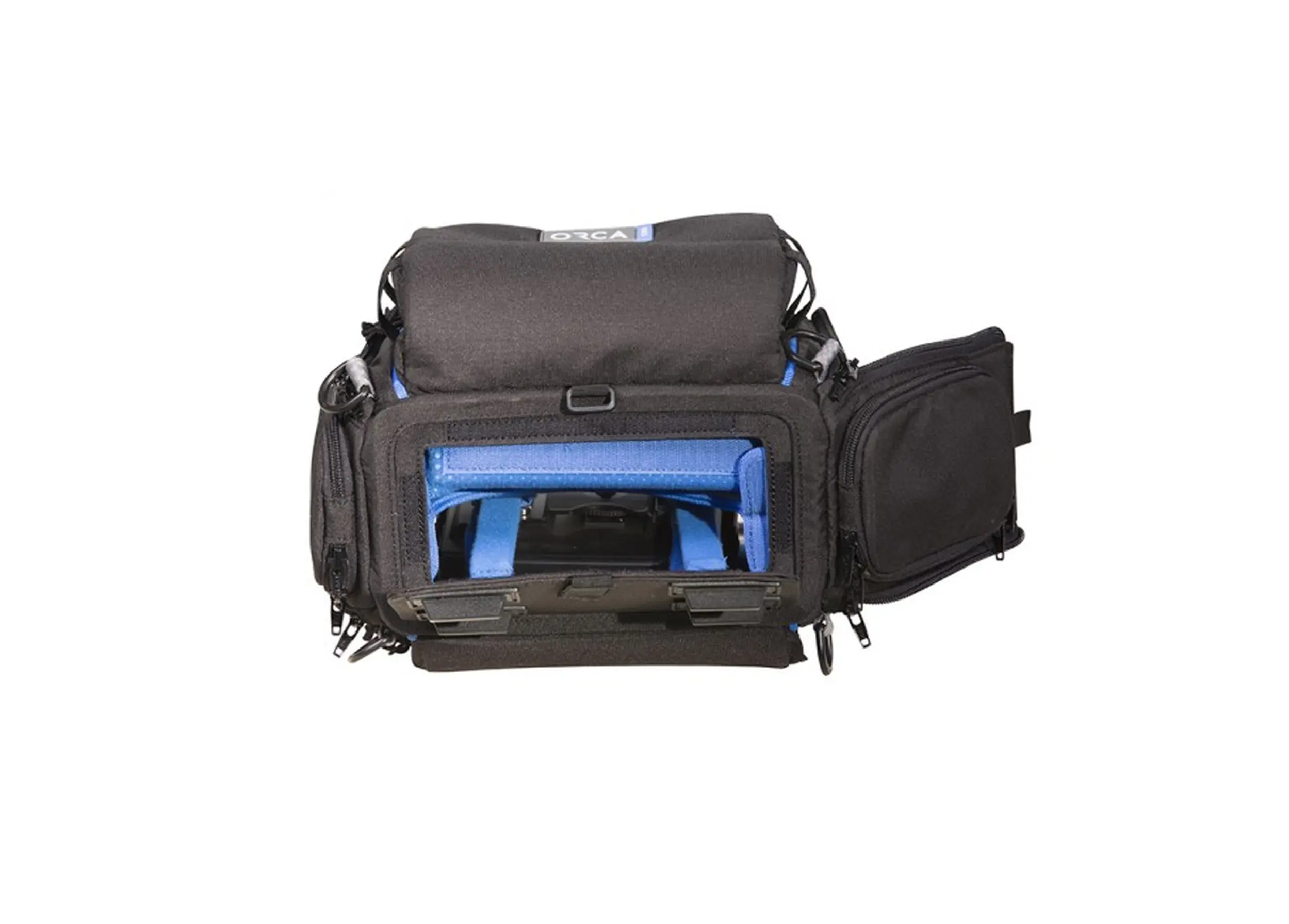 La Orca OR-28 permite acceso total desde todos los lados, facilitando la operación del grabador sin necesidad de retirarlo de la bolsa.