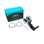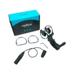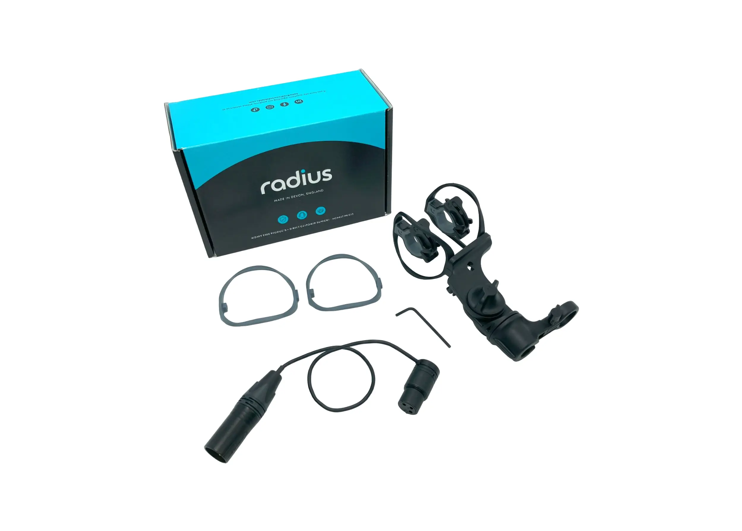 El sistema utiliza la tecnología de suspensión Rycote-style de Radius, basada en aros elásticos de alta precisión, que desacoplan el micrófono del soporte sin comprometer la estabilidad.