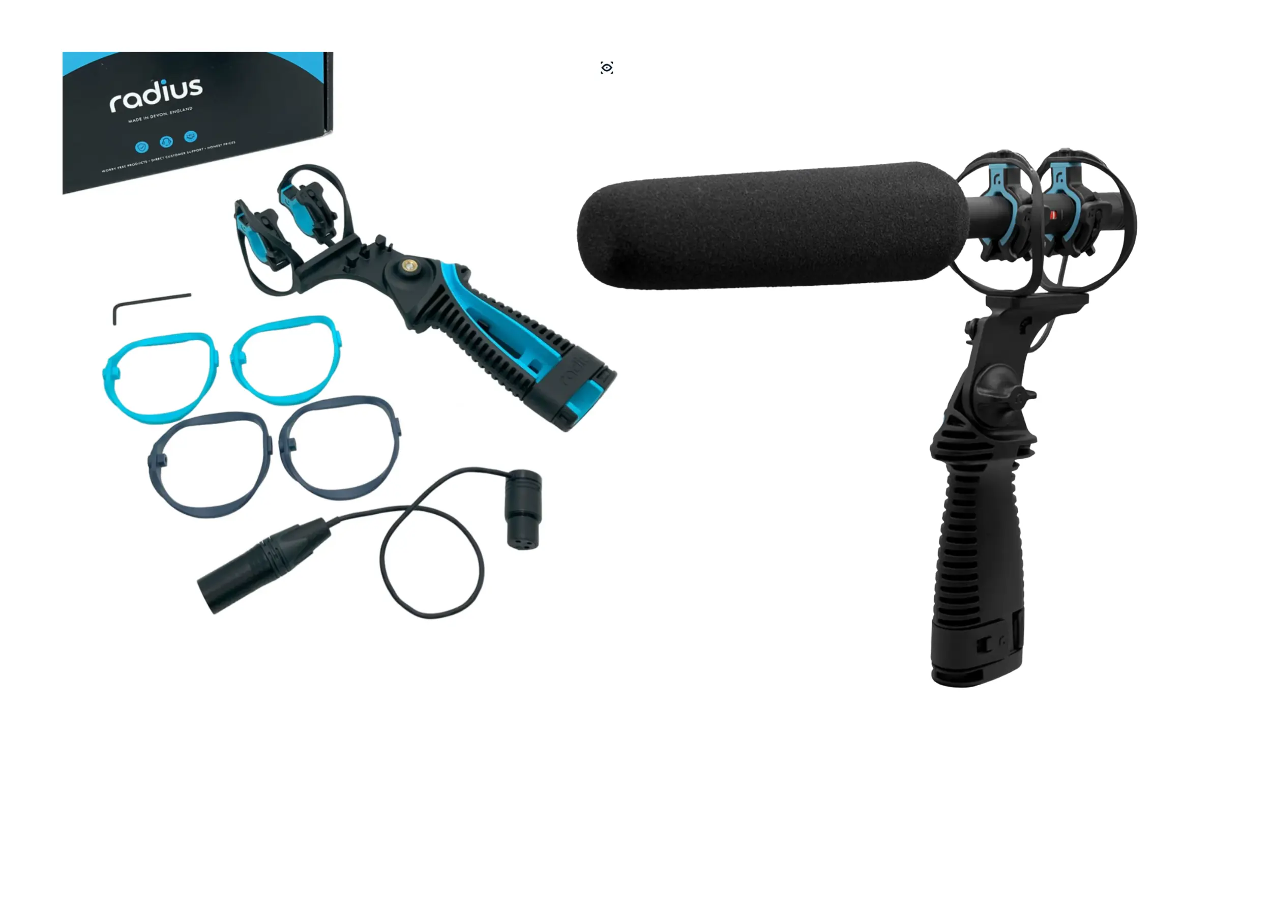 Ofrecen el mismo aislamiento y soporte que los RAD-2, pero incluyen una empuñadura de pistola en lugar de un adaptador de jirafa.