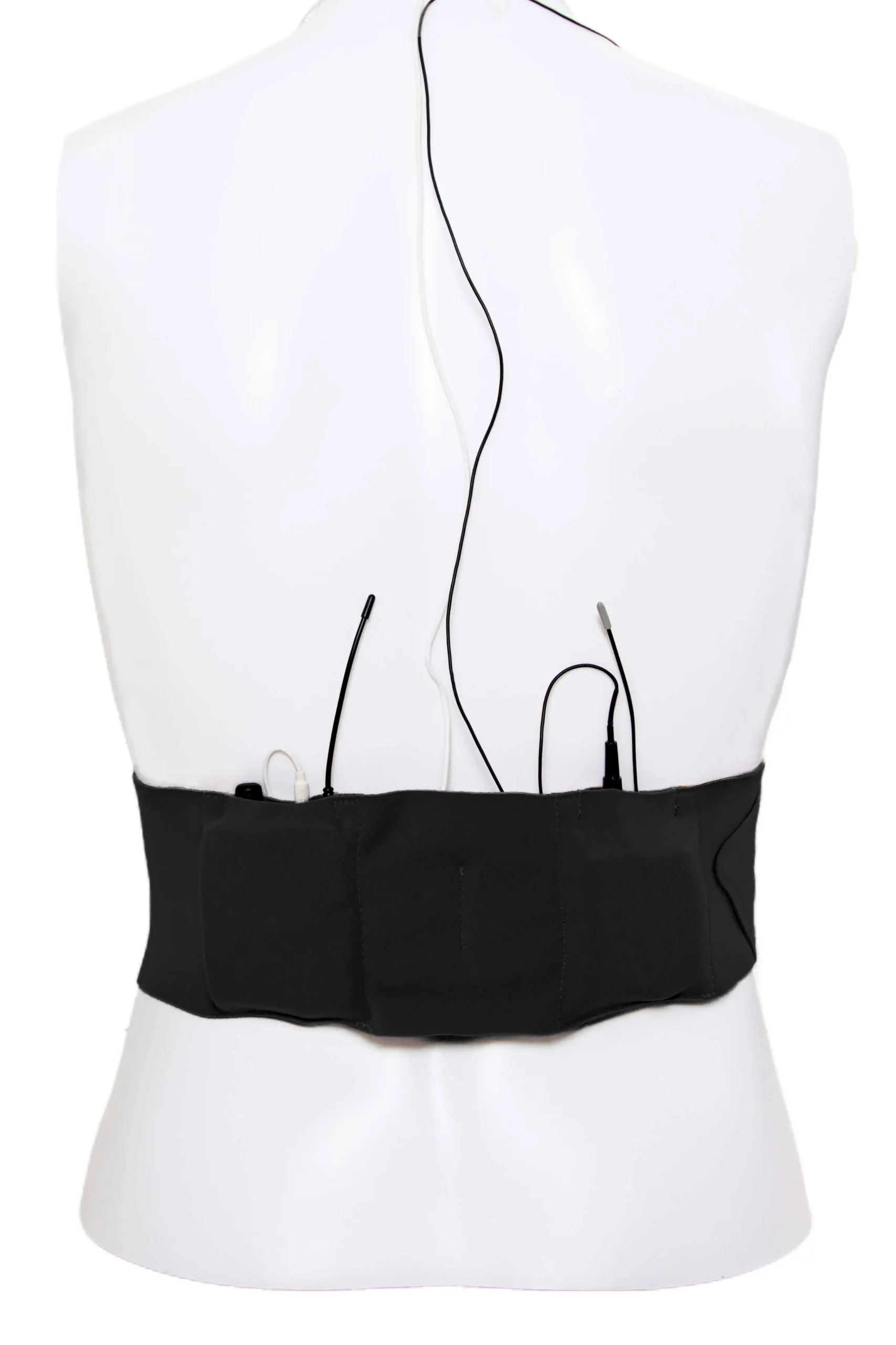 Distribución equilibrada del peso, estabilidad de los transmisores y facilidad para ocultarlos bajo vestuario.
