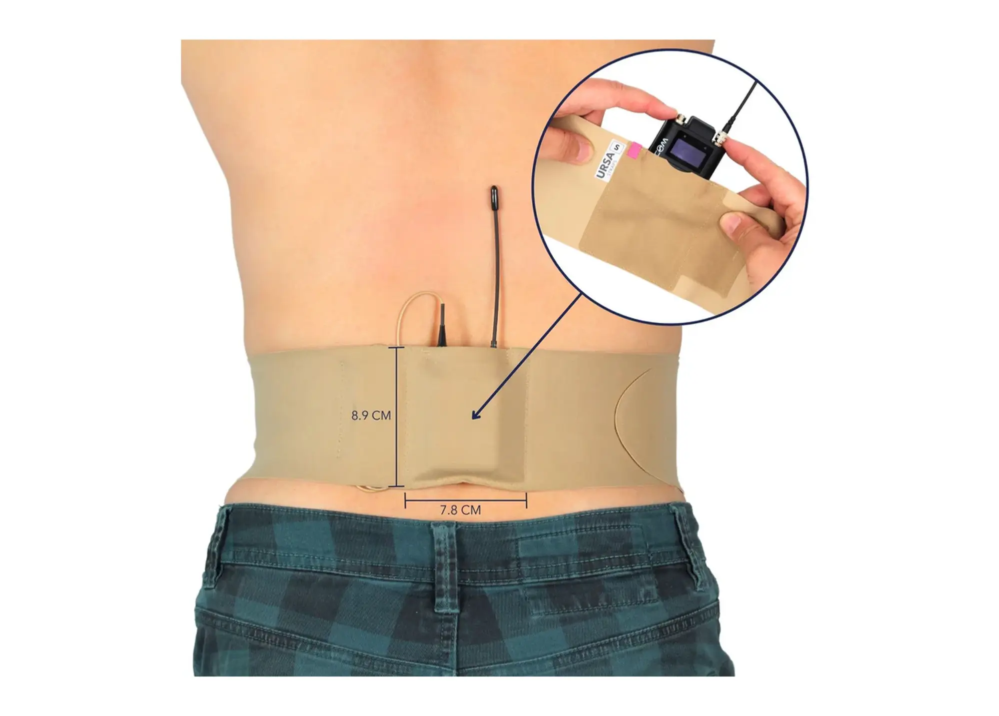 La Ursa Waist Strap es una banda elástica de cintura discreta y cómoda, diseñada para sujetar transmisores inalámbricos de forma segura.